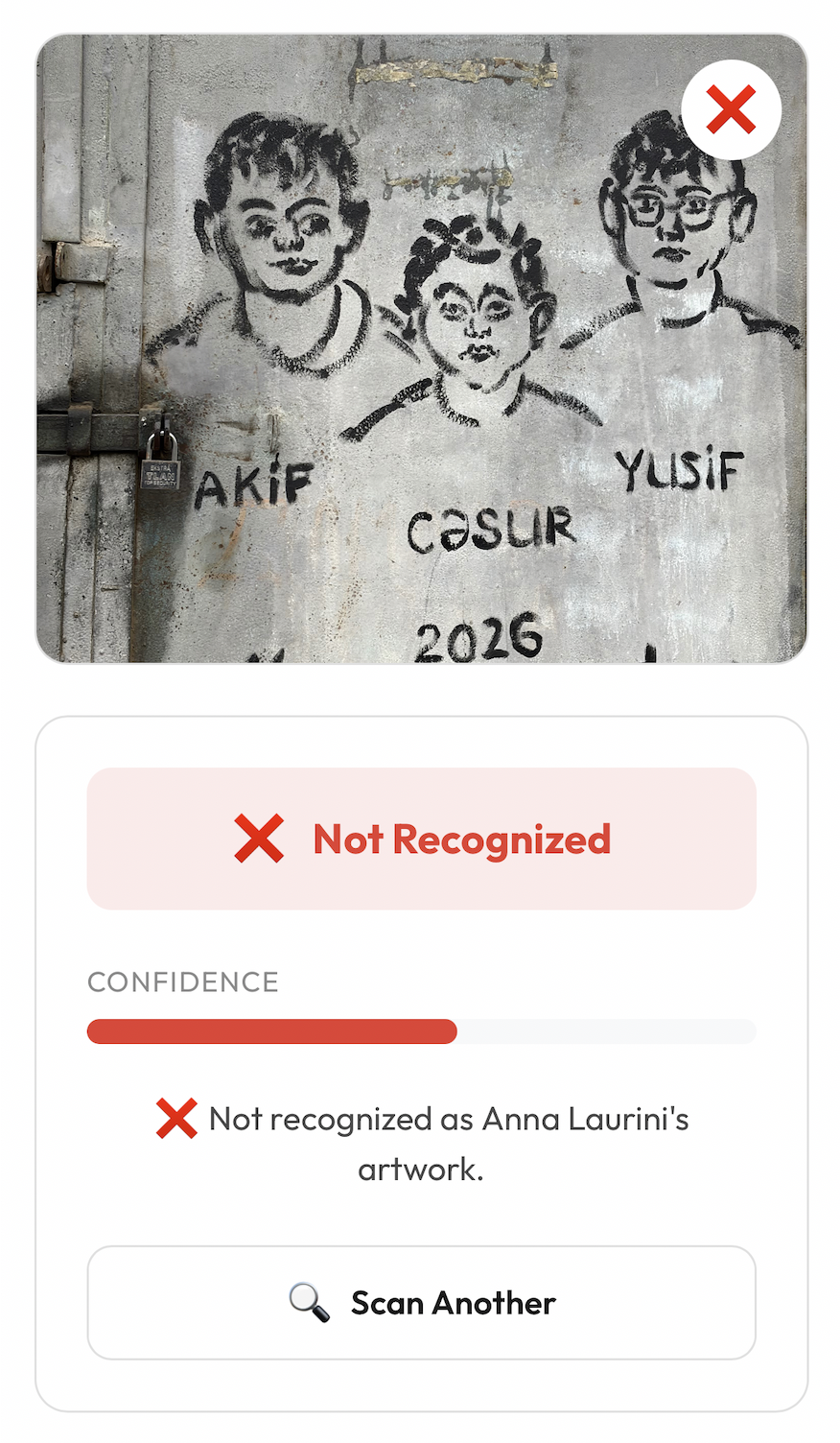 After that the art is being verified — we check whether the uploaded photo actually contains Anna Laurini's art. Here we have the following outcomes: