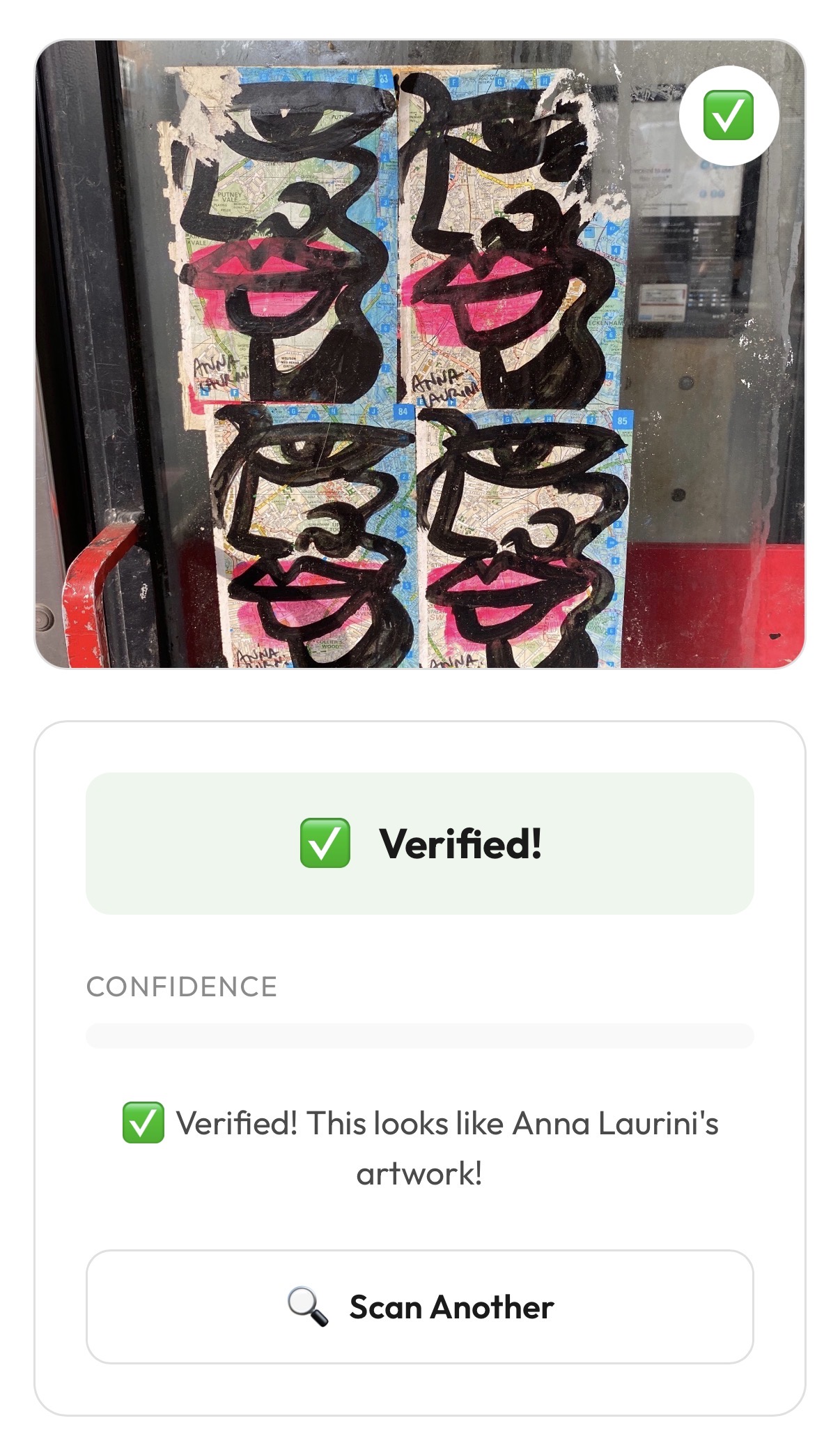 The core feature of the app is verifying whether a photo actually has Anna Laurini's artwork. As mentioned above, I used an AI model called CLIP.